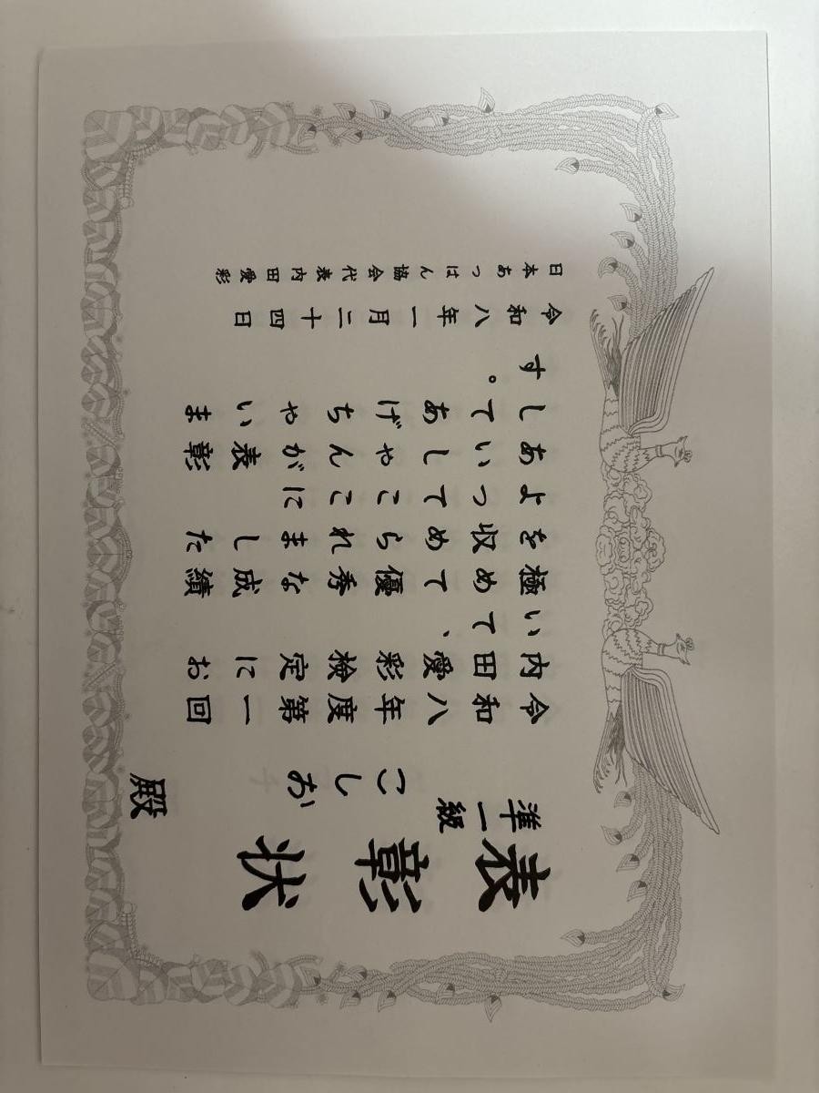 2026.1.24 第一回 内田愛彩検定 表彰状✨